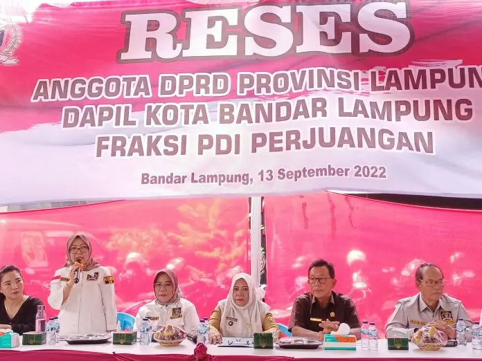 Reses yang dihadiri oleh anggota DPRD Provinsi Lampung yakni Kostiana SE.MH, Aprilliati SH.MH, Ar. Suparno SE, dan juga Lenistan Nainggolan SH. Keempat anggota DPRD Lampung Fraksi PDI Perjuangan ini menyerap aspirasi masyarakat khususnya Bandarlampung di di Lapangan DPC PDI Perjuangan Kota Bandarlampung, Jl. P. Emir Moh. Noer, Durian Payung, Kecamatan Tanjung Karang Pusat, Selasa (13/09/22).