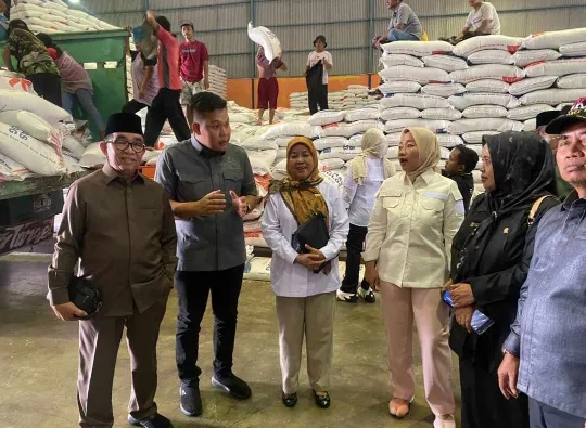 BANDARLAMPUNG – Stok beras di Lampung jelang Bulan Ramadhan dipastikan aman. Hal ini ditegaskan Anggota Komisi II DPRD Lampung Muhammad Khadafi Azwar bersama Ketua Komisi II Siti Rahma, Sekretaris Lesty Putri Utami dan para anggota Komisi II DPRD Lampung lainnya usai meninjau Gudang Bulog di Campang Raya, Rabu (15/2).