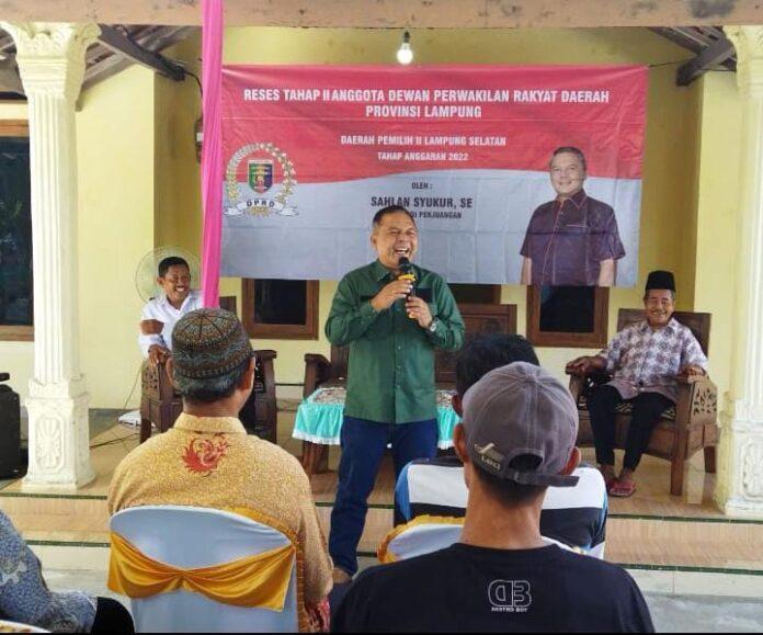 BANDARLAMPUNG – Anggota Dewan Perwakilan Rakyat Daerah (DPRD) Provinsi Lampung Sahlan Syukur melakukan reses (serap aspirasi) di delapan titik. Kunjungan reses di Kabupaten Lampung Selatan (Lamsel) tersebut, menyerap puluhan usulan dari masyarakat.