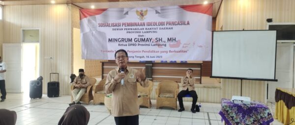 Dalam sambutannya, Ketua DPRD Provinsi Lampung, Mingrum Gumay menggencarkan penanaman Ideologi Pancasila di kalangan pelajar. Penggalakan penanaman Ideologi Pancasila melalui sosialisasi Pembinaan Ideologi Pancasila ini sangat baik bagi para pelajar.