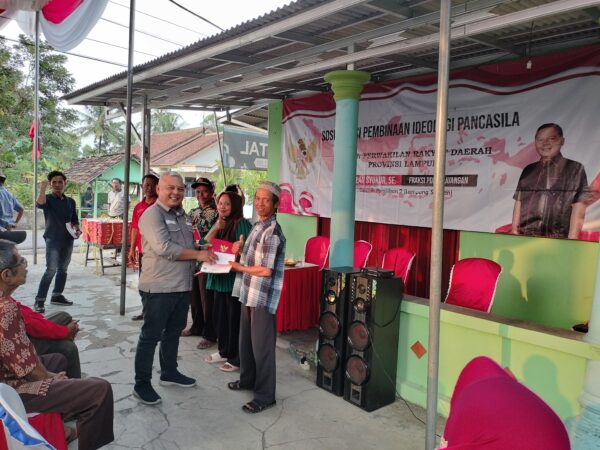 “Nah, kalau kita bertuhan kenapa kita masih sering menggunjing. Kenapa kita tidak peka terhadap masyarakat yang tidak mampu. Nah, disinilah, pentingnya kegiatan sosialisasi ini. Agar, kita semuanya memahami apa makna pancasila,” kata Anggota Fraksi PDI Perjuangan DPRD Provinsi Lampung, Sahlan Syukur saat menggelar kegiatan Pembinaan Ideologi Pancasila.