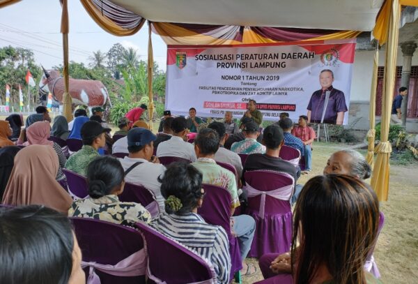 Melalui kegiatan Sosialisasi Peraturan Daerah (Sosper) Perda Nomor 1 Tahun 2019, Tentang Fasilitasi Pencegahan Penyalahgunaan Narkotika, Psikotropika, dan Zat Adiktif Lainnya. Anggota Komisi II DPRD Provinsi Lampung tersebut menyampaikan bahwa silaturahmi yang dilakukan pada hari ini merupakan bentuk kekeluargaan yang harus terus dipupuk, agar masyarakat dengan wakil rakyat terus terjalin.