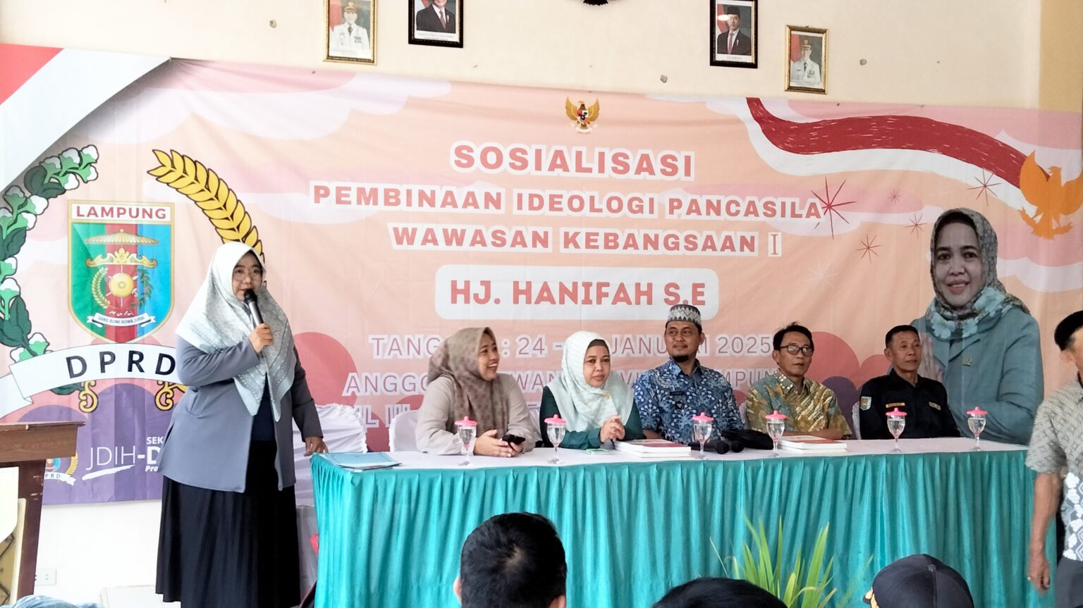 Anggota DPRD Provinsi Lampung Hanifah SE, menggelar kegiatan sosialisasi Pembinaan Ideologi Pancasila dan Wawasan Kebangsaan di desa Trimulyo, Kecamatan Padang Cermin, Kabupaten Pesawaran, Sabtu 25 Januari 2025.