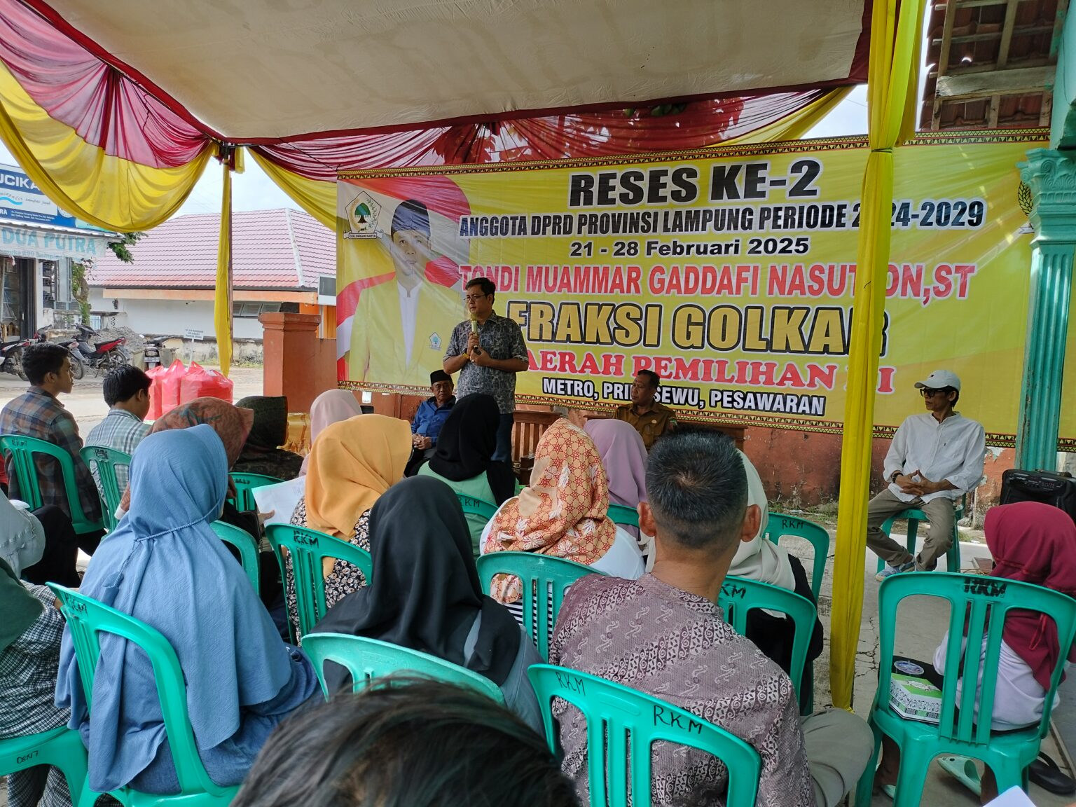 Pesawaran — Silaturahmi yang dikemas dalam giat serap aspirasi Anggota DPRD Provinsi Lampung, periode 2024 – 2025 mendapat respon positif dari warga Desa Sukaraja Gedong Tataan Pesawaran. Pasalnya, aspirasi yang disampaikan dapat didengar dan diterima langsung oleh Anggota Legislatif.