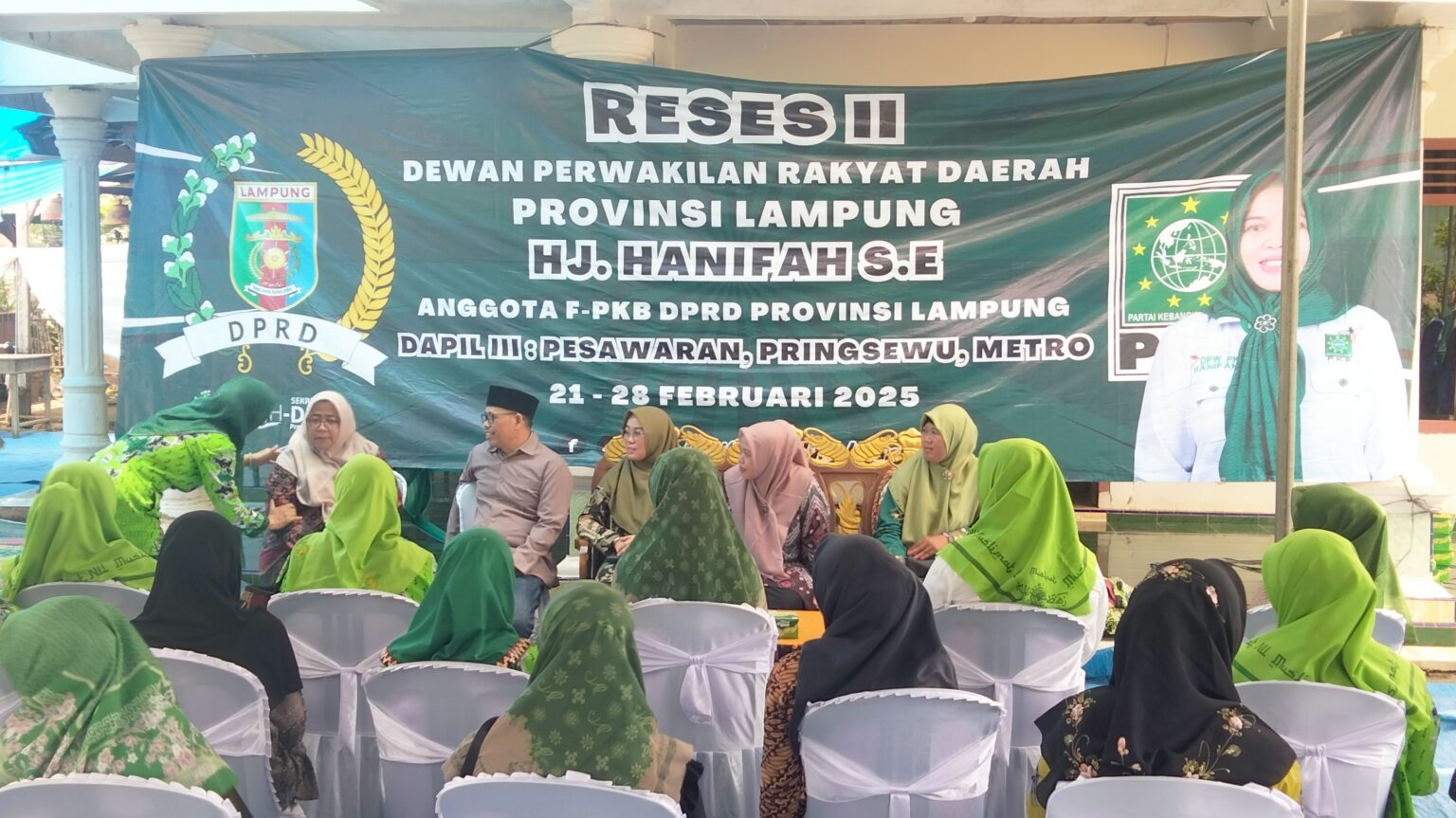 Anggota DPRD Provinsi Lampung Hanifah S.E menggelar kegiatan serap aspirasi atau reses di desa Tri Rahayu, Kecamatan Negeri Katon, Kabupaten Pesawaran pada hari Rabu, 26 Februari 2025.