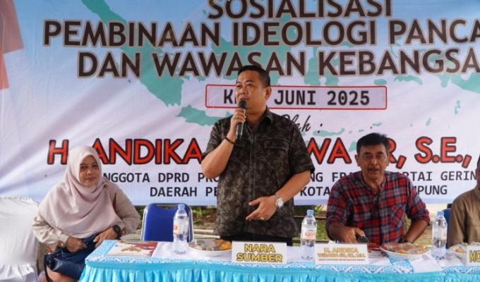 Anggota DPRD Provinsi Lampung, Andika Wibawa SR, menggelar kegiatan Pembinaan Ideologi Pancasila dan Wawasan Kebangsaan pada Rabu (4/6/2025), pukul 09.30 WIB, bertempat di Jl. Mawar LK 3, Kelurahan Kedaton, Kecamatan Kedaton, Kota Bandar Lampung.