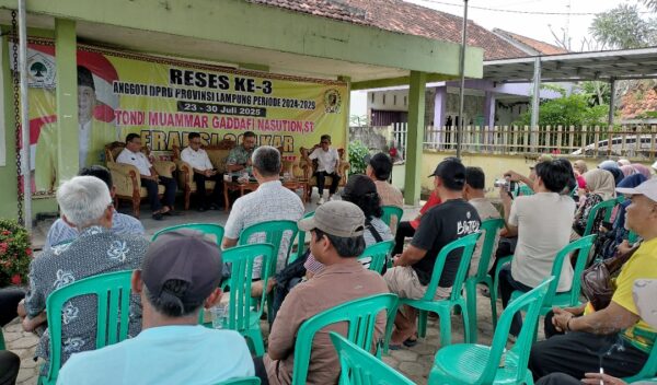 Metro — Warga Kelurahan Hadimulyo Barat, Kecamatan Metro Pusat, Kota Metro, menyampaikan sejumlah aspirasi kepada Anggota DPRD Provinsi Lampung, Tondi Muammar Gaddafi Nasution, dalam kegiatan reses yang digelar Rabu (23/07/2025).