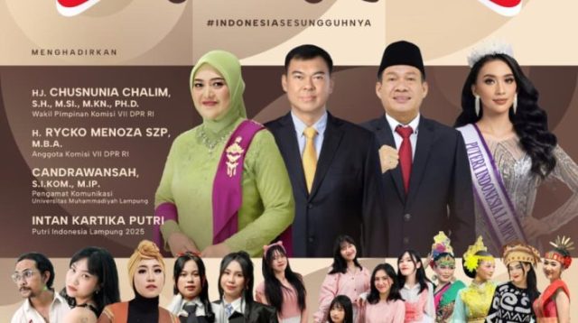 Putri Indonesia asal Lampung, Intan Kartika Putri, dan Pengamat Komunikasi Universitas Muhammadiyah Lampung (UML), Candrawansah, M.IP., juga didapuk sebagai narasumber.